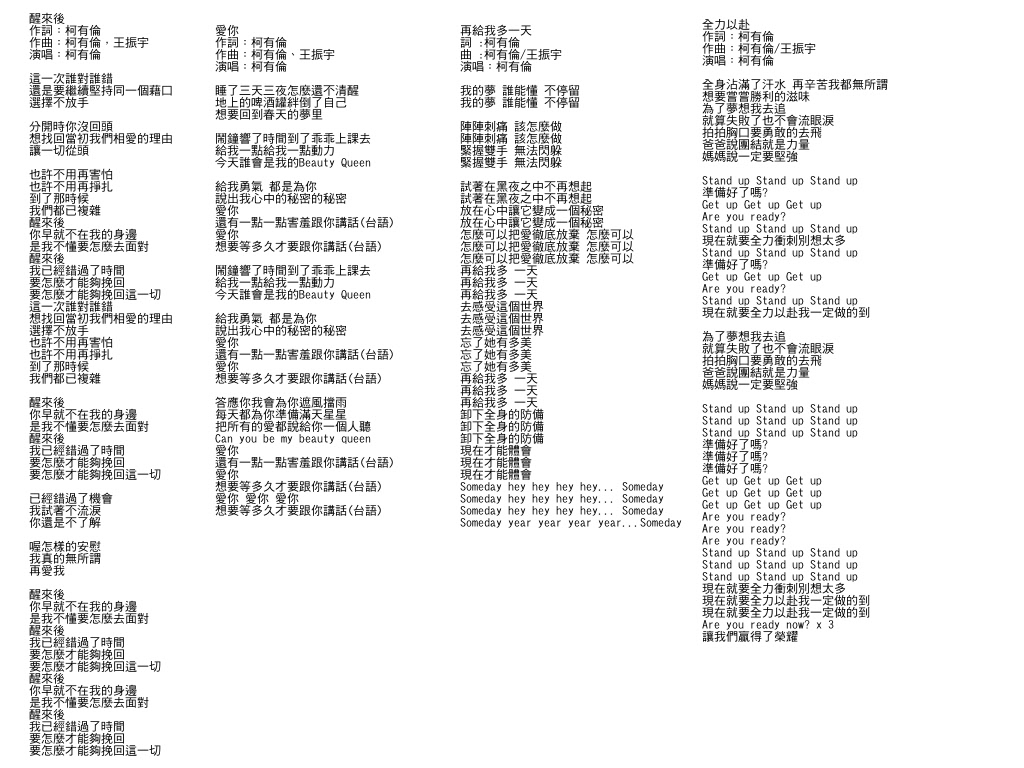 2102年 電影“陣頭”音樂原聲帶/插曲 愛你、再給我多一天、全力以赴、醒來後-柯有倫
